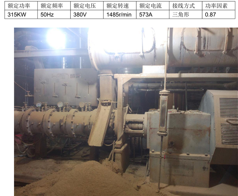 2、 、 改造設(shè)備概述: :客戶要求改造的設(shè)備為膨化機(jī),達(dá)315KW 功率(實(shí)際銘牌數(shù)據(jù)如下表1)。膨化機(jī)工作原理為:利用膨化機(jī)的不等距非標(biāo)準(zhǔn)螺旋系統(tǒng)的擠壓推進(jìn),物料中的氣體被排出,并迅速被物料填充,物料受剪切力作用而產(chǎn)生回流,使機(jī)膛內(nèi)的壓力增大,隨著摞旋與機(jī)膛間的磨擦使物料充分混合、擠壓、加熱、膠合、糊化而產(chǎn)生組織變化,原有的結(jié)構(gòu)受到破壞,同時(shí)機(jī)械能通過物料在膛內(nèi)的磨擦作用而轉(zhuǎn)化為熱能,使物料成為具有流動(dòng)性質(zhì)的膠凝狀態(tài),物料被擠壓到出口時(shí)壓力由高壓瞬間變?yōu)槌海筛邷厮查g變?yōu)槌兀斐伤盅杆俚貜慕M織結(jié)構(gòu)中蒸發(fā)出來,使其內(nèi)部形成無數(shù)微孔結(jié)構(gòu),再通過切割裝置,切割冷卻即膨化成形。