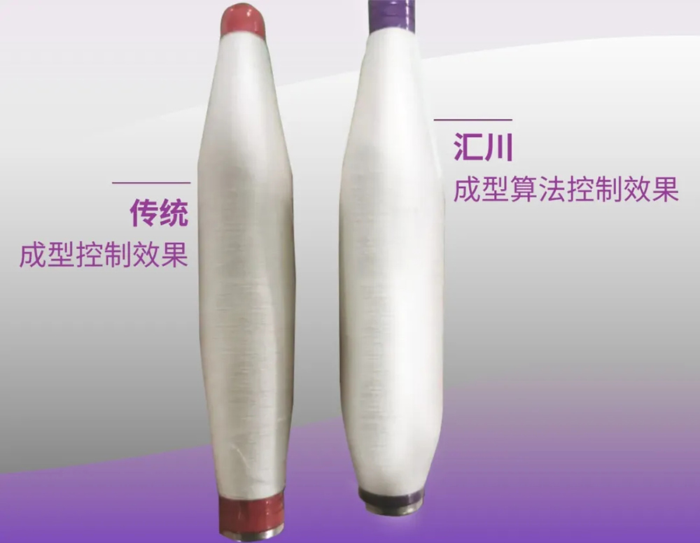 針對傳統設備無法生產高附加值品種的痛點,匯川全電方案采用EtherCAT總線方案,通訊速率相比CAN總線方案更快,羅拉速度實時可調,響應更快,能滿足超短竹節、段彩等特殊品種工藝要求。