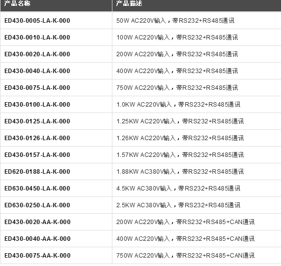 提供RS232、RS485或CANOpen、Profibus DP通訊接口電流,速度和位置數字化控制
